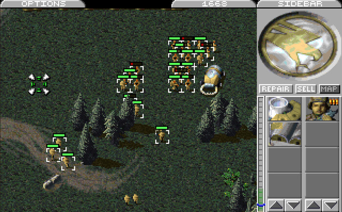 «Дюна 3», как его по выходу звали некоторые. От дюны2 тут, правда, разве что харвестеры со «спайсом» да фантастический сеттинг. А так для игры придумали новую вселенную и избавили от персонального управления каждым юнитом. Обвёл всех в рамку и отправил куда надо. Ну и видеовставки между миссиями тоже прелести игре добавляли.