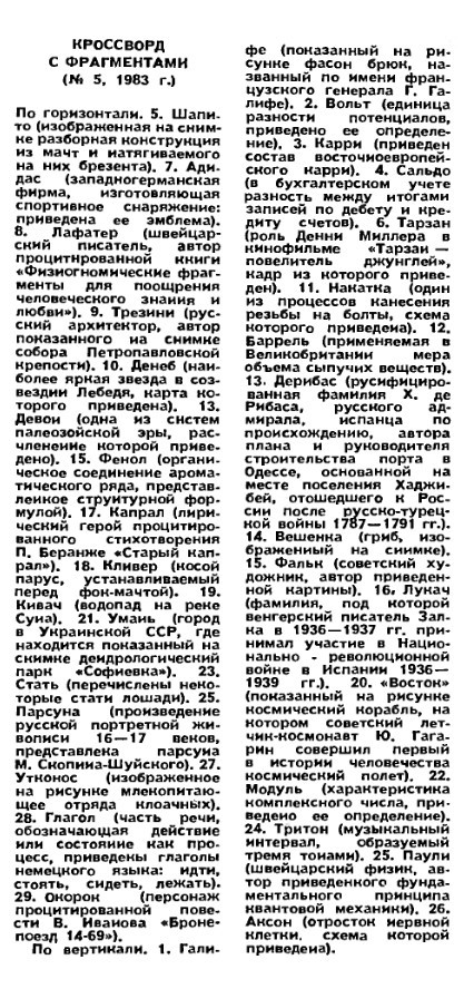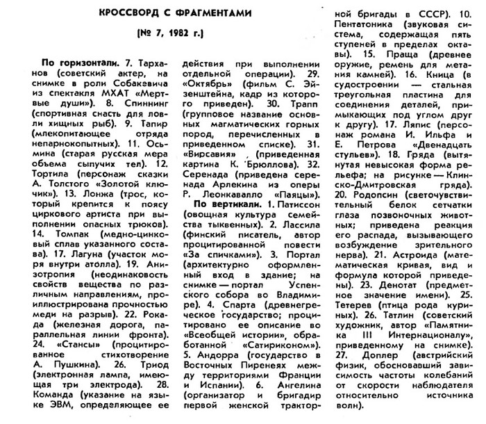 Ответы к: "Кроссворд с фрагментами".1982.5