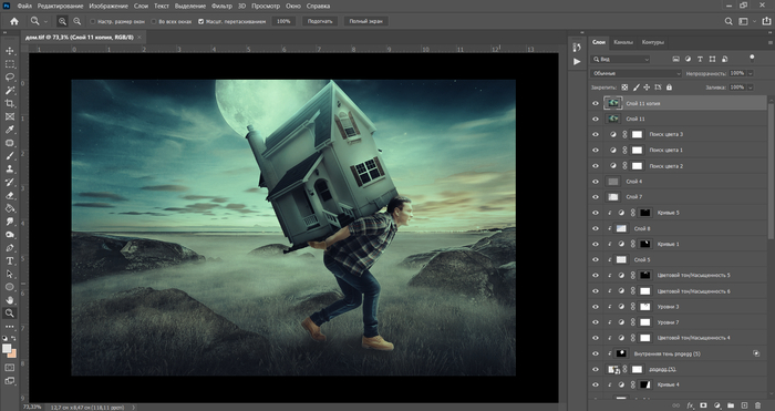 Есть базовые и продвинутые средства коррекции (работа с каналами, применение техники «додж-и-берн»).