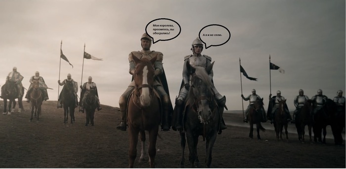 И тут с нильфовского берега прибегают рыцари под предводительством королевы Мэв и требуют вернуть паром, потом с берега северян появляются нильфы-моджахеды.