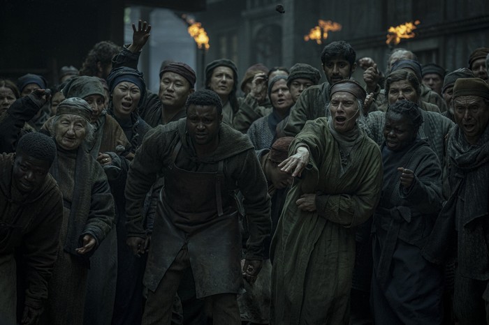 Кстати про уплОчено. А почему сериал с таким бюджетом выглядит так убого и дешмански? Любимые локации тут – это лес, либо уёбищные сараи с вкраплениями пары убогих городских кварталов из папье-маше, которые пихают куда можно, и куда нельзя. Из более-менее нормального – дворец Эмгыра-истерички, да внутреннее убранство замка Сестринства Колец (если это не одна и та же локация, кстати говоря).