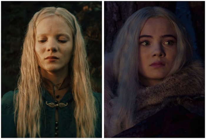 Начинается с того, что девочка спорит со стариком Посвистом - рассказчиком истории про ведьмака, и тот предлагает ей поведать оную своими словами. Таким образом создатели попытались оправдать смену Геральта, а заодно – дать фанатам чуточку фансервиса, ведь эта девочка - Нимуэ вэрх Вледир аэп Гвин, эпизодический персонаж цикла, жившая спустя сотню лет после похождений Геральта (впрочем, с Цири она встретиться смогла, да).