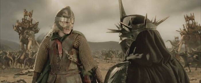 В случае Сарумана его самым сильным оружием снова и снова является его голос. Об этом предупреждает Гэндальф, когда они направляются к переговорам после победы у Хельмовой Пади.