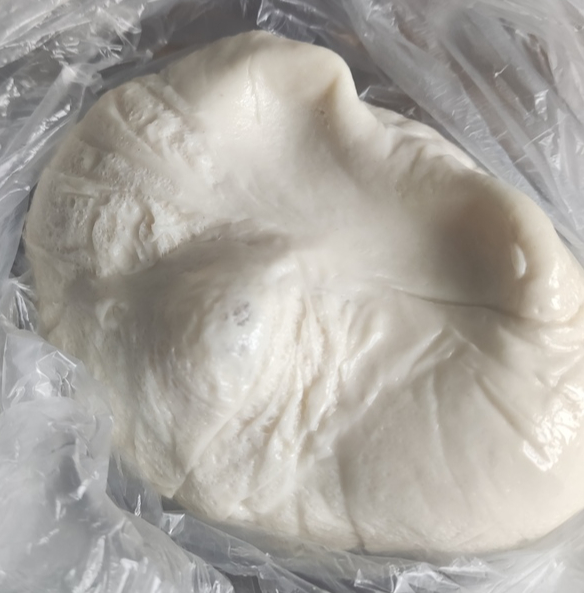 Достаем наше тесто из холодильника, достаем из пакета.