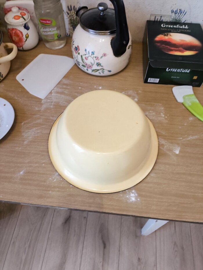 1) Берем сосуд для замешивания, у меня это эмалированный тазик.