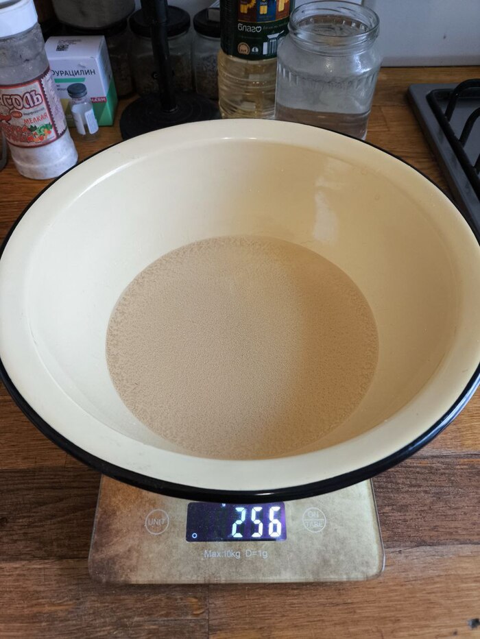 Кстати 240+ 365 + остальное =~625 г теста, ничосе мы намешали зотмана на 600 рубасов за всего рублей 30.