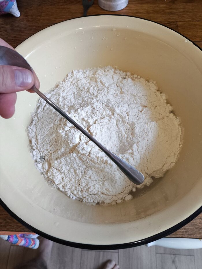 5) На требование венчика в пункте выше особо одарённые наверное уже начали писать, что мол "А МЫ ТОКА ВЕСЫ И СКРЕБОК КУПИЛИ, КАКИЕ ЕЩЕ ВЕНЧИКИ, НЕТ У НАС ТАКОГО", поэтому подогреем им пукан новым не заявленным инструментом - ложкой, которой за примерно секунд 30-50 всё смешиваем до +- однородности