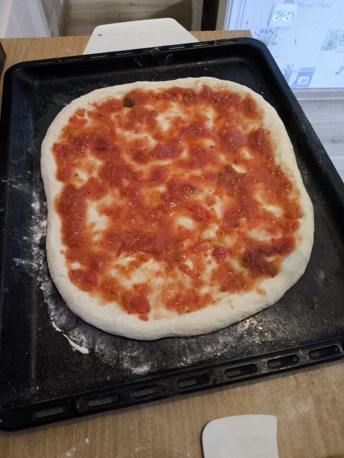Прошу вас, ради господа нашего Сварога, не мажьте тесто томатной пастой. Томатная паста кисловато-сладко-терпкая, густая и создана для того, чтобы сохранить урожай и усилить вкус составных блюд. Она прекрасна, если с ней тушить предварительно прижарив, она офигенна в зажарках для супов/вторых блюд/сосусов, но МАЗАТЬ ЕЮ ТЕСТО называя этот кислый мерзотный сблёв пиццей - кулинарное преступление, особенно учитывая то, что за +- ту-же цену можно купить с доставкой на дом вот такие вот ВКУСНЫЕ готовые начинки или сделать по гайдам с рутуба (гойда!) из самых дешевых томатов томатный соус.