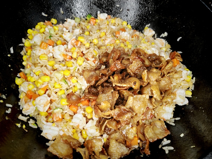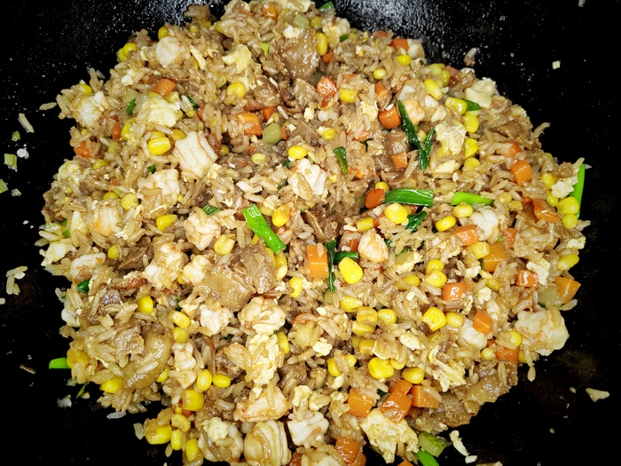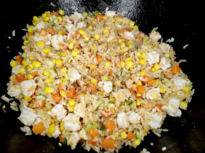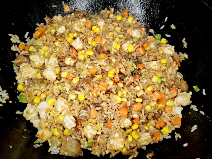 Вообще считается, что по-классике чаофань делается из "вчерашнего" риса. Холодного, слипшегося и грустного. А всё, с чем его жарят добавляется для того, чтобы рис этот стал повеселее. Но это только один способ. Второй способ, которым я и буду пользоваться состоит в предварительном обжаривании сухого риса на масле. И последующей его варке/жарке.