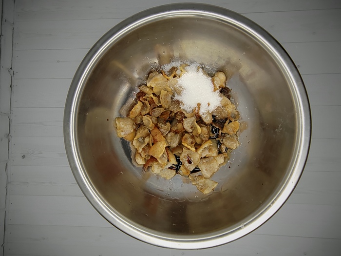 Вообще по специям все тоже вариантивно - я, например, из дополнительного взял когда-то приготовленное масло с пятью китайскими специями (сычуаньский перец, бадьян, корица, гвоздика, семена фенхеля) и перцем чили - рис получился с ароматом печенек. Достаточно классические компоненты - это имбирь и чеснок, но в этот раз мне не захотелось их добавлять. В общем, подойдёт практически, всё, что угодно, у чего есть какие-то азиатские вайбы.