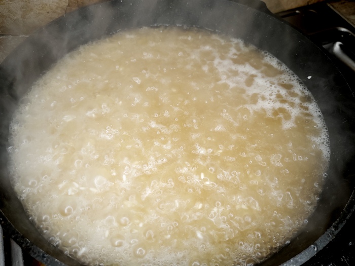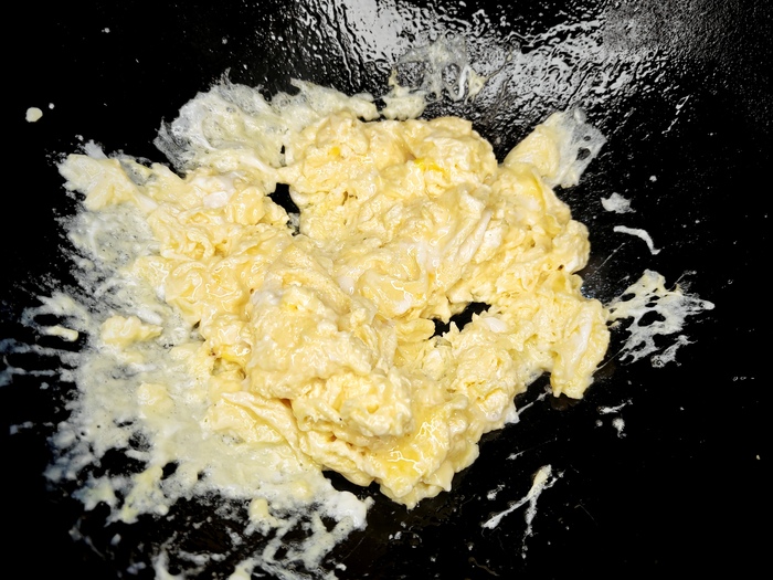 13. Призываем древнее зло - в смысле, достаем вок или казан. Так-то, необзятельно, но веселее. Наливаем в него масла для жарки, хорошенько разогреваем и плюхаем туда яйца (куриные). Обжариваем, перемешиваем, извлекаем из казана.