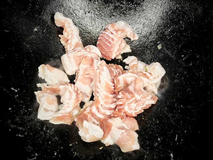 21. Потом свинью с соевым соусом. Тоже перемешиваем и тоже греем.