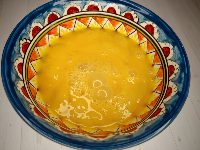 12. Яйца разбиваем в плошку и перемешиваем с небольшим количеством соли.
