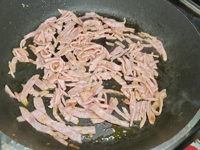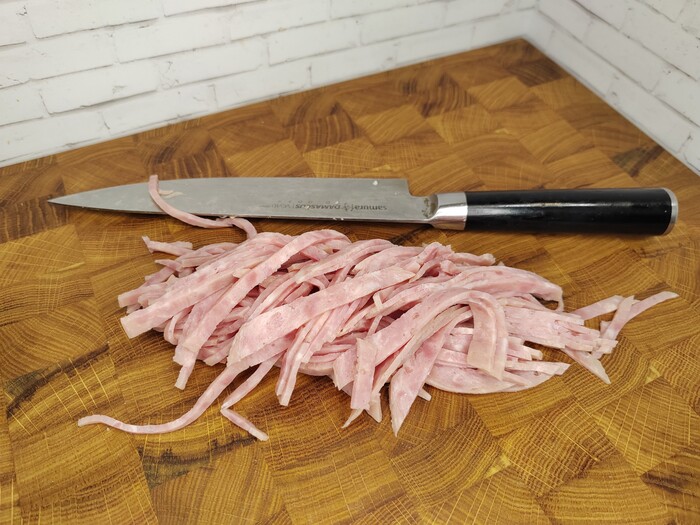 7. Ветчину порежем на такую же лапшу, как и морковь.
