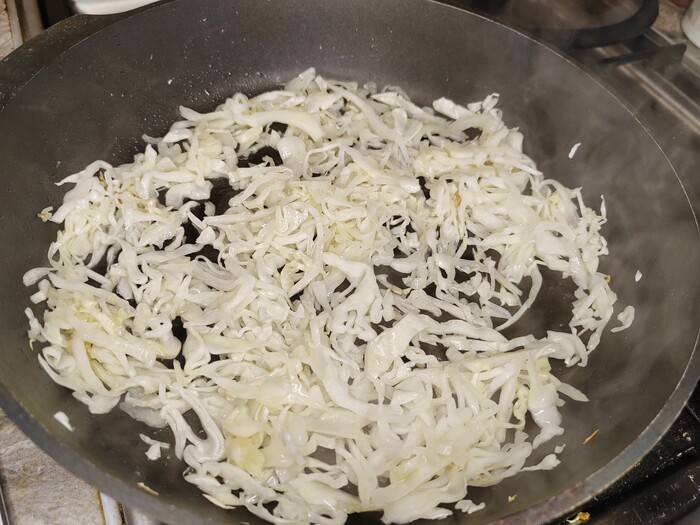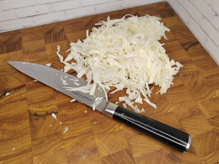 4. И капусту пошинкуем. В идеале, конечно, сделать с краснокочанной - кимпабы а разрезе будут сочнее.