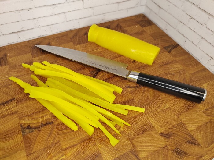 6. Танмуджи порежем брусками, если он мариновался целиком.
