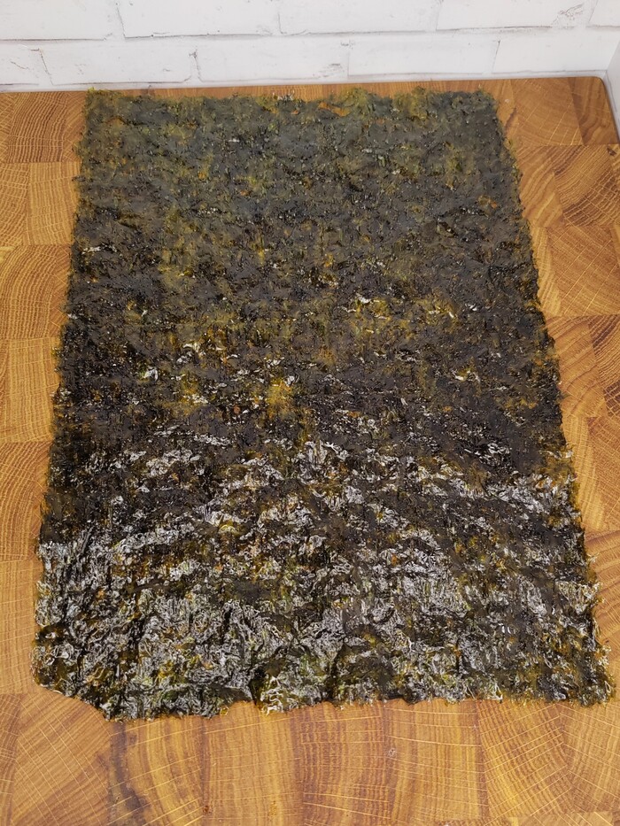 • ким (он же нори, он же морская капуста. Не берите обжаренный - он слишком нежный для приклеивания риса к нему) - 5 или 10 листов. В зависимости от того, каким способом будете скручивать колбаски. Рекомендую, всё-таки, брать 10;