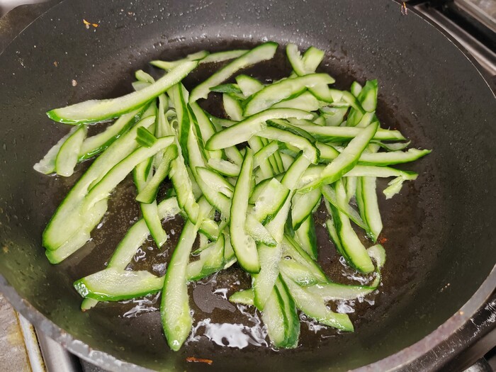 14. Потом огурцы. Их просто прогреть. Безо всяких добавок.