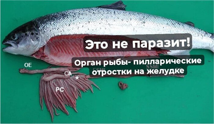 Самое интересное! 95% всех жалоб на паразитов в рыбе это вообще не черви, а НОРМАЛЬНЫЕ ЗДОРОВЫЕ органы гидробионтов: пилорические отростки на желудке у рыбы и сперматофоры у кальмара.