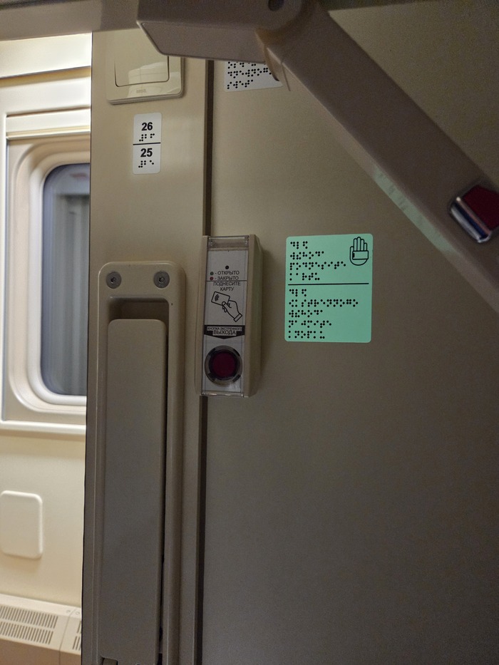Ехал сегодня в купе и при въезде в туннель заметил всего две флюоресцентных таблички, с шрифтом брайля и куда открывается дверь, может кто объяснить логику данной подсветки?