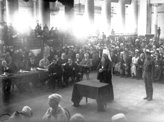 Как известно, большевики были ярыми противниками церкви и вели курс на атеизм. По этой причине в стране было снесено или перестроено большое количество религиозных построек и убито множество церковнослужителей. Считается, что здесь, в лесу за Пороховыми, примыкающем к Ириновской железной дороге, был погребен расстрелянный в 1922 г. митрополит Петроградский Вениамин (Казанский), архимандрит Сергий (Шеин), профессор кафедры уголовного права Петроградского университета Ю.П. Новицкий и юрисконсульт Александро-Невской лавры И.М. Ковшаров.