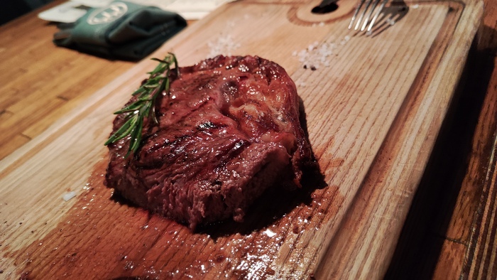 Когда я попробовал первый кусочек, вашу-эффекта не случилось. К сожалению на вкус это такой же стейк за 1500, только сочнее. И конечно на краю у него был реберный хрящ, очень сгрустнул что заплатил за 50 грамм хряща.