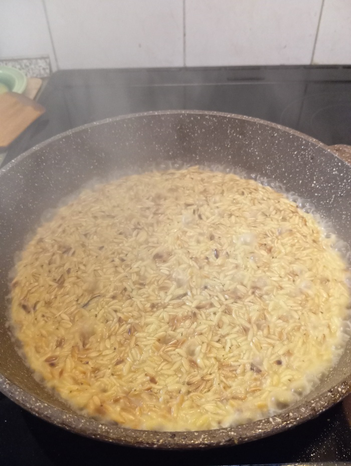 Весь процесс с начала обжарки пасты я проводил на сильно огне, так как люблю ризотто менее текучее. Тем, кто хочет кремовости, я рекоммендую готовить спо той же технологии, но на среднем огне.