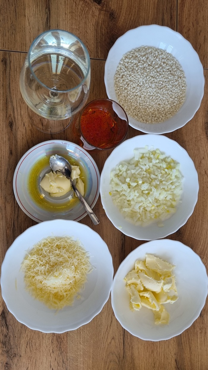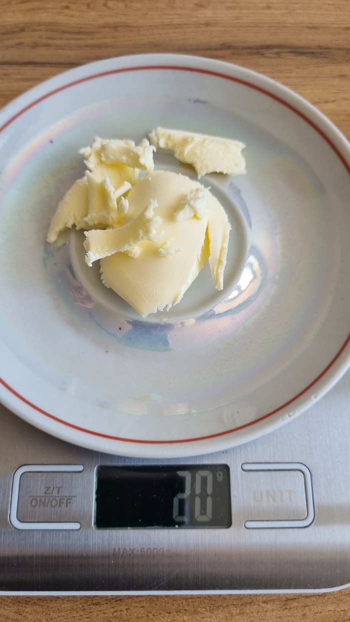 И заготовить сливочное масло, чтобы в конце добавить в ризотто. Ещё 40% от веса риса. 80 грамм.