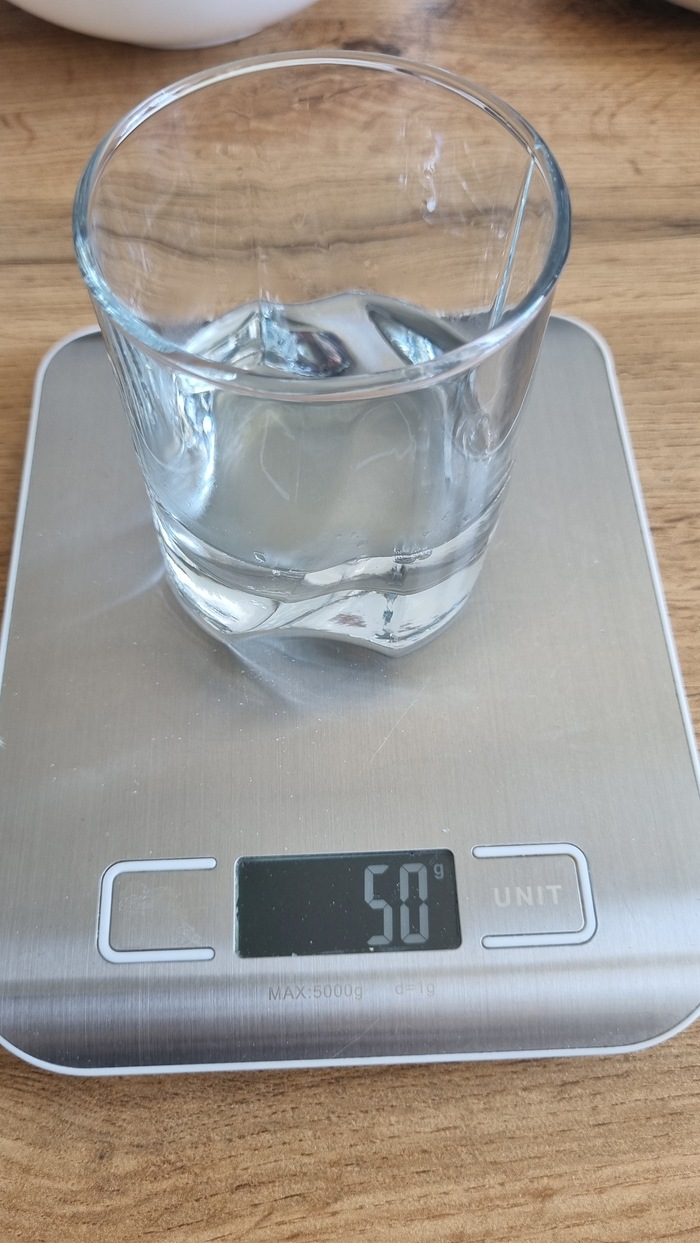 Теплую водИчку. 50 грамм. (градусов 40). Заметьте! Воду, теплую, 50 грамм. 40 градусов по Цельсию. А то с водОчкой перепутаете и дальше всё как в тумане.