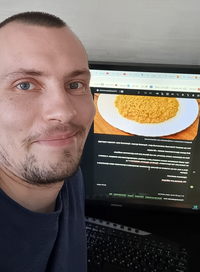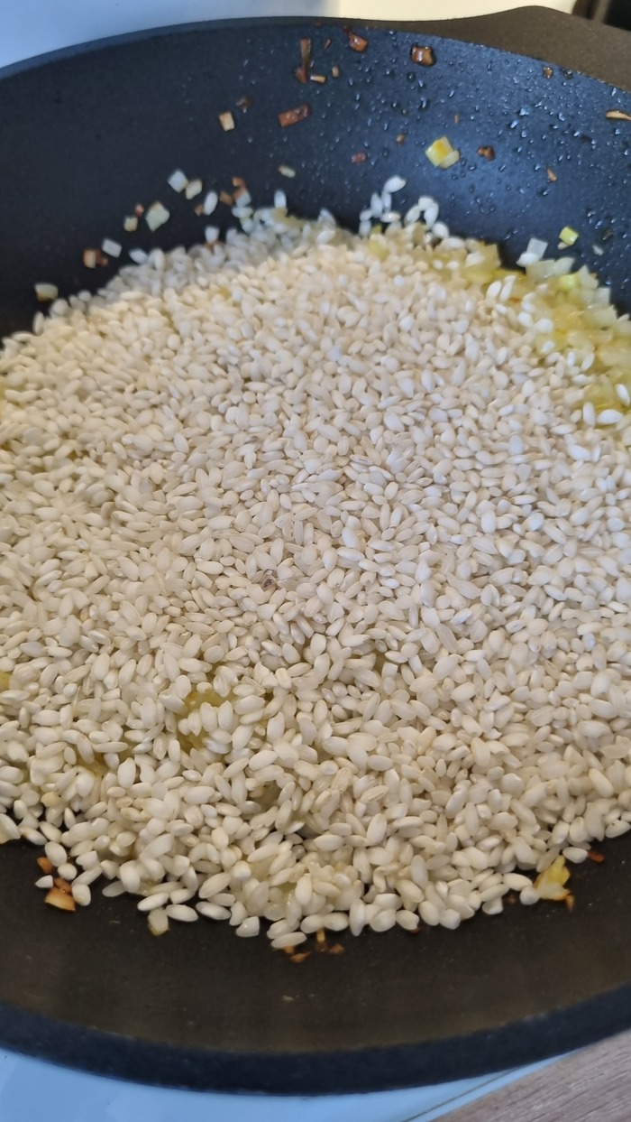 Да, да, да. Надо рис на сухой сковородке прогревать. С луком всё будет не так... Всё сгорит, сварится, распадётся на атомы... Пофиг! Шеф из Италии может себе позволить, почему мы не можем?