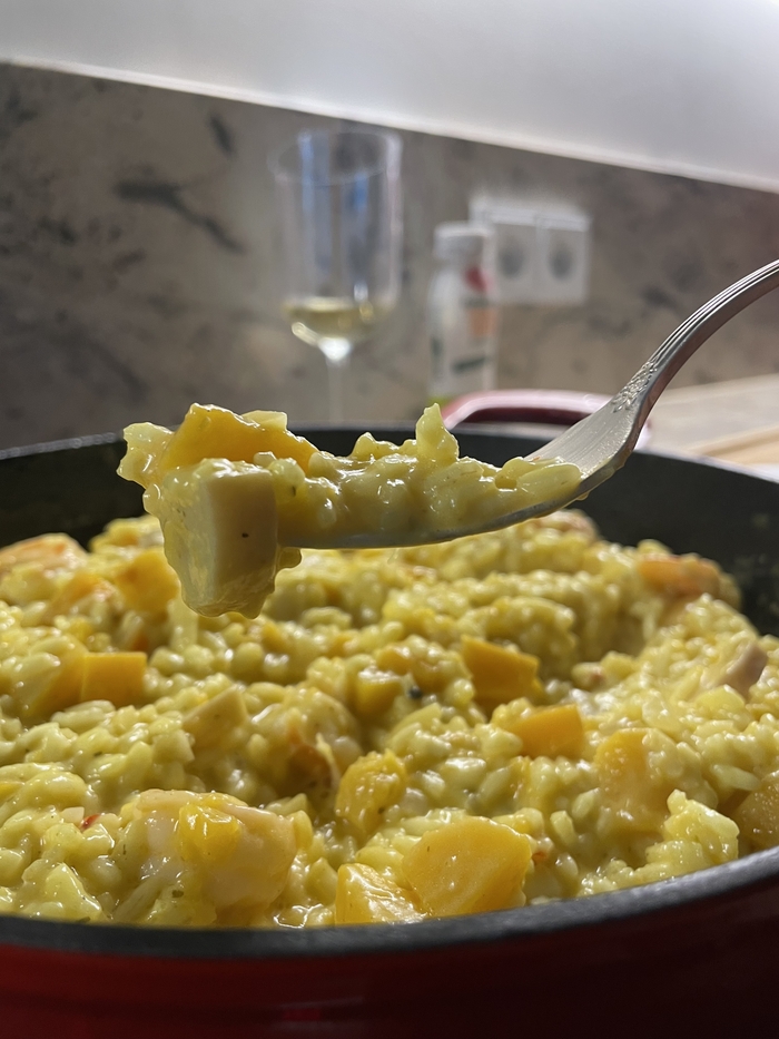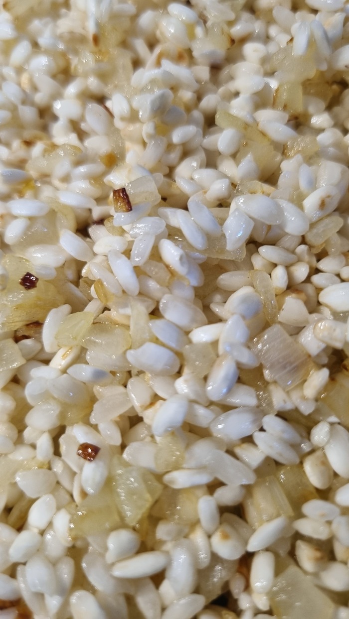 При такой технологии можно готовить рис с грибами, морепродуктами или овощами. А можно и не только рис так приготовить. Гречётто, перлотто, пшенотто и т.д.