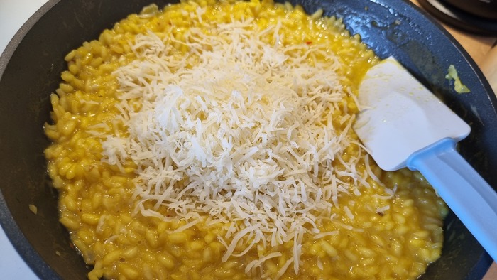 Мне не пришлось солить ризотто, так как бульон уже был достаточно солёным.