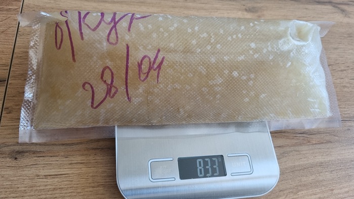 833 грамма. По окончанию приготовления, у меня осталось 200 грамм.