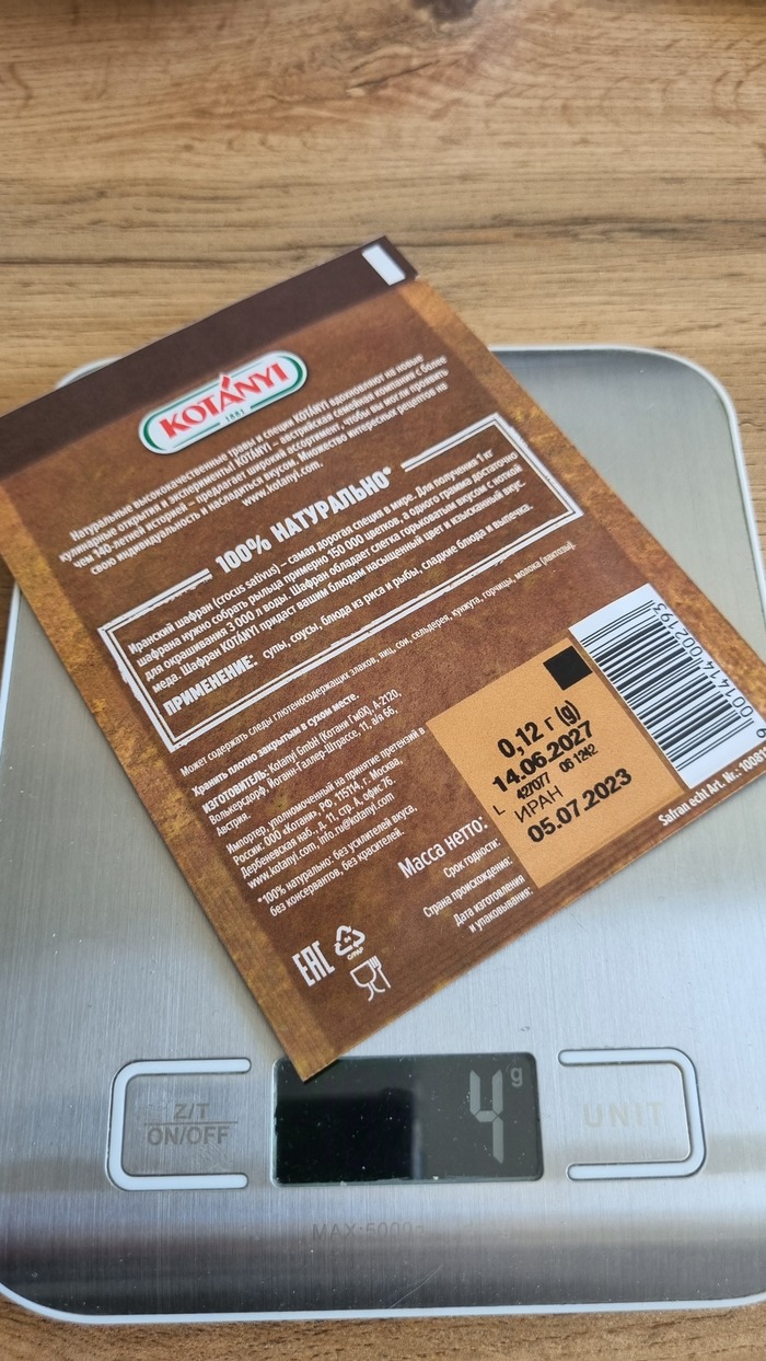 В него рыльца шафрана. 0,12 грамм. Это как раз один пакетик.