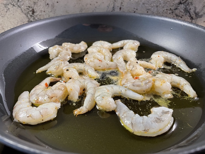 Бульон стоит на постоянном подогреве, поэтому процесс готовки не приостанавливается, когда мы доливаем его в сковороду.
