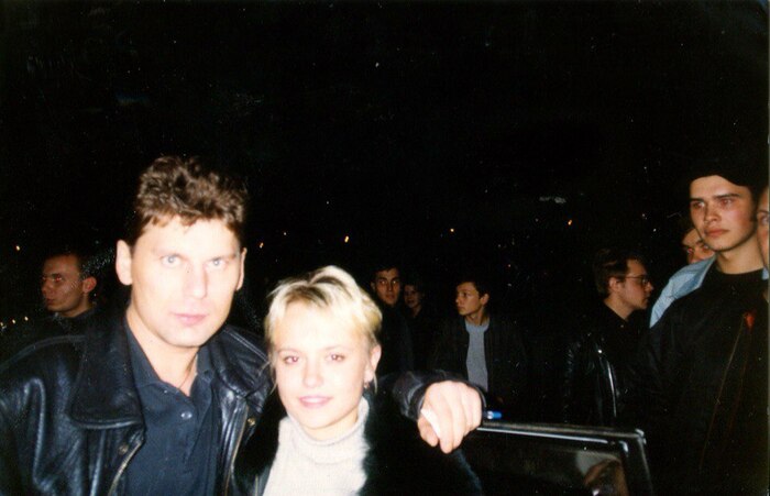 Юра Хой со своей дамой Ольгой после концерта, 1990-е годы.