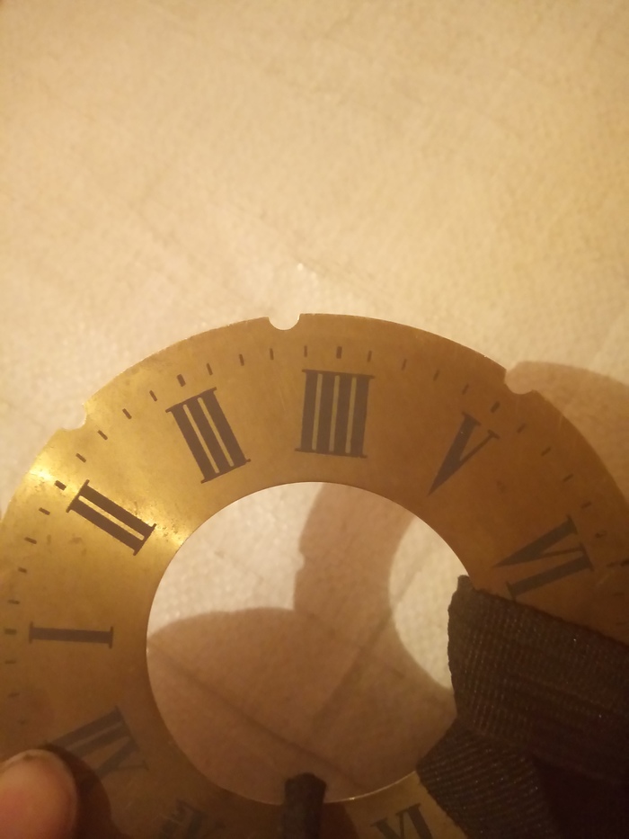Как то в заброшенном доме нашли деревянные настольные часы. Они были довольно старими и красивыми, но спустя год я их разобрал а циферблат вскоре решил повесить себе на сумку. Где то год ходил с ним за спиной как заметил что цифра 4 нанесена как-то странно.