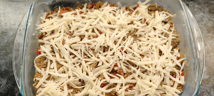 В жаропрочной форме соединяем филе куриное, творог, помидор, кукурузу (можно не добавлять), яйца, зелёный лук, соль и перец по вкусу, перемешиваем и, в заранее разогретую духовку до 180С отправляем на 30 мин. По истечении времени посыпаем сыром и еще раз - в духовку, пока сырная корочка не станет румяной (15-20 мин.)