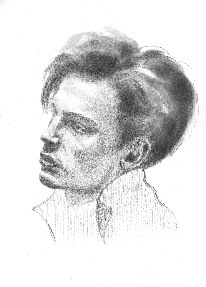 Портрет простым карандашом, материал ватман и карандаши мягкостью 2Н до 6В. Рисовал в 2014 году, самоучка. На портрете староста группы со времен учебы в университете.