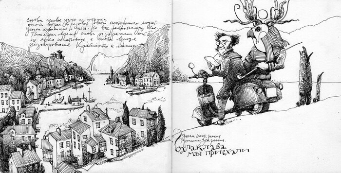 Эти образы создавались в разное время на полях и обрезках бумаги просто ради удовольствия, не как иллюстрация или внешний заказ. Просто развлечение и как бы дневниковая фиксация настроения.
