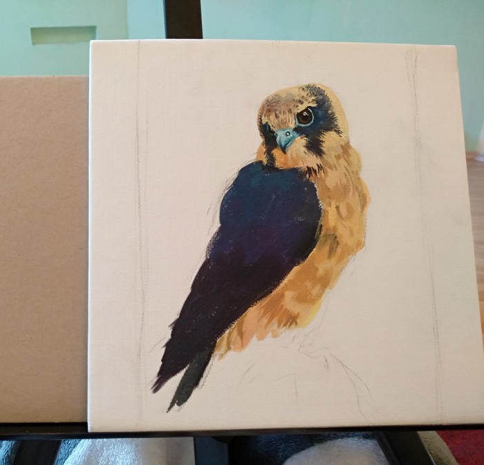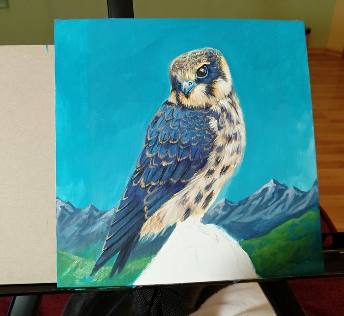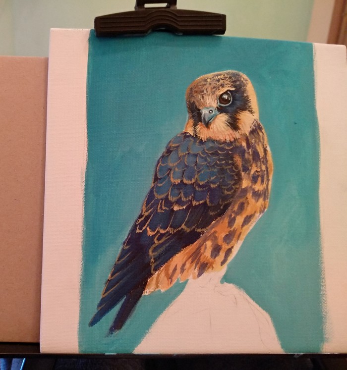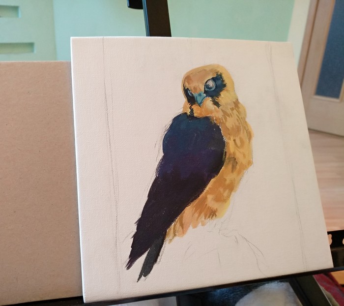 перчатка еще не разрисована, а картинка с соколом декоративная уже есть. :)