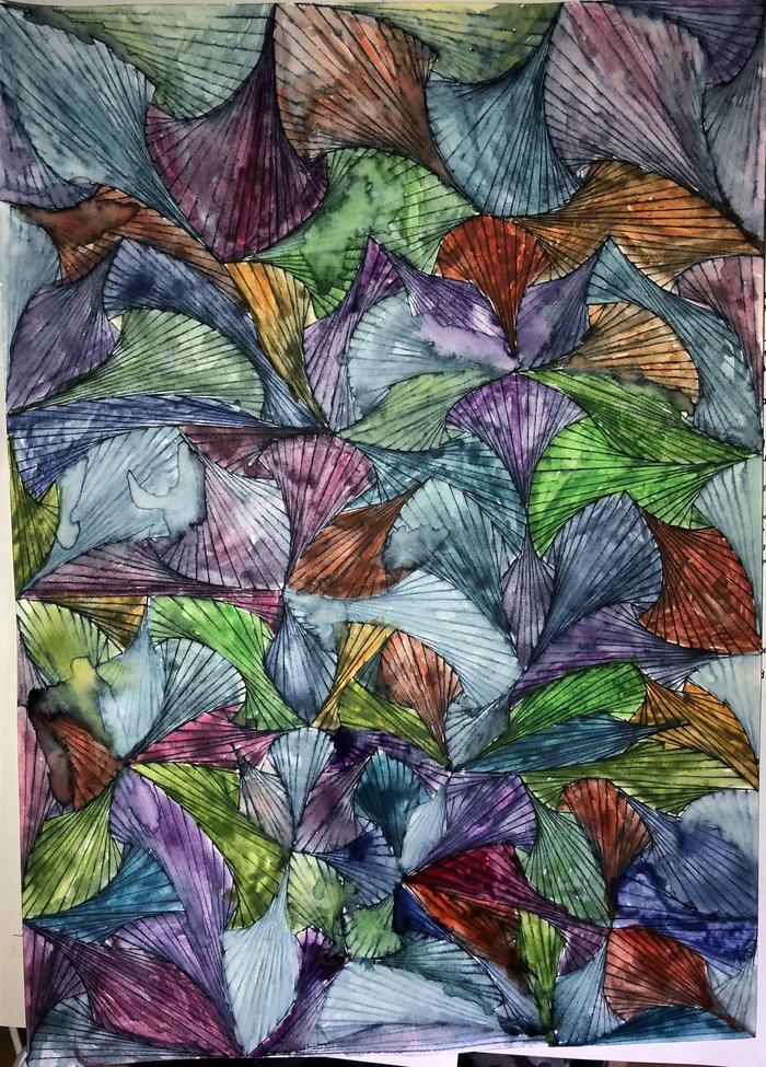 Два эскиза из многих одного типа, проклятие космических треугольников постигло меня. Акварель, линеры.