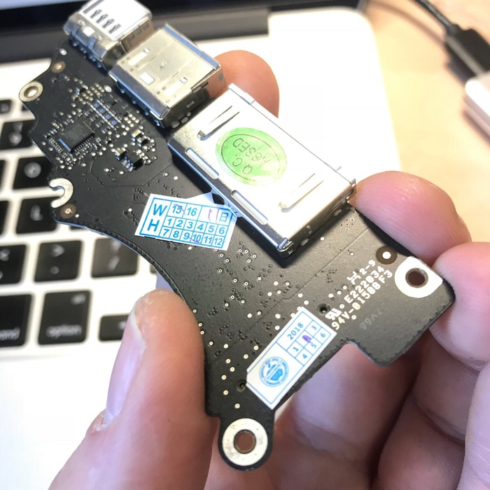 после нескольких дней мучений, беготни и потраченных астрономических сумм, мы имеем а)макбук с платой, на которой не работает hdmi и б)снятую плату, на которой не работает юсб. ввиду того, что единственный hdmi мне все же важнее второго юсб, я решаю попробовать вернуть все взад, то есть поменять платы обратно.
