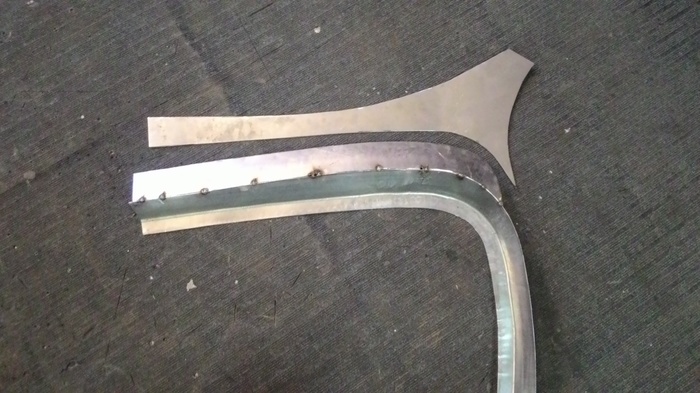 Выше представлено фото того, что должно быть. Но это только часть, сверху на это все идет еще один профиль, который на этой машине сгнил и был отпилен. Фоток оригинала с этим профилем не сделал, но зато то что получилось покажу).