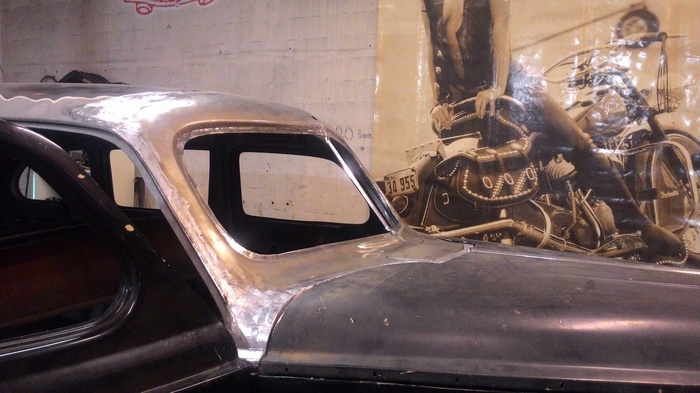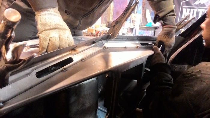 Тем временем ребята сделали часть торпедо и приварили к машине, чтобы мне было к чему приводить рамку: