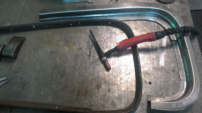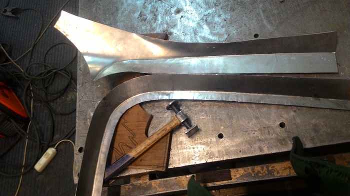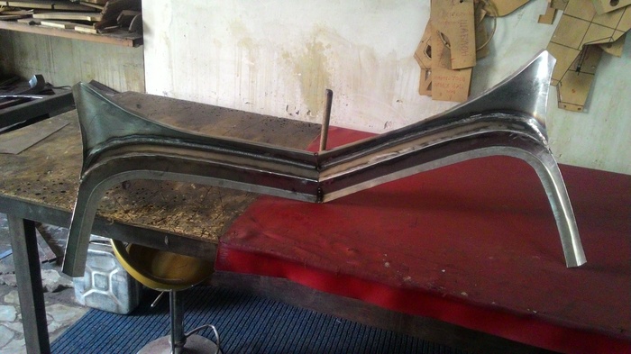 Разделенной на части детальке я уже легко придал форму, и отдал ее на сварку коллеге. Потом зачистил.