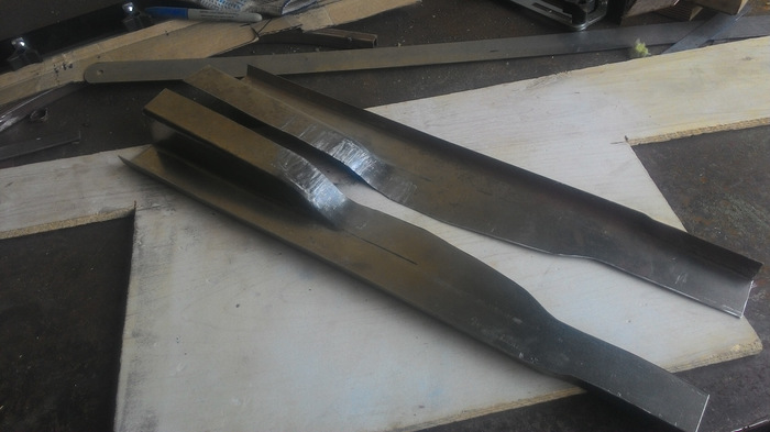 Изначально планы были грандиозными, и хотел уложиться в 4 детали всего - основная часть и накладка на каждую из сторон. Как я уже говорил - чем меньше сварных швов, тем пижже. Профессионализм, итить. Но не долго музыка играла, и после двух потерянных дней воодушевление спало, а неудачи и голоса в голове по мере появления новых проблем убеждали упрощать деталь. В итоге моя часть рамки из 4 запланированных деталей стала состоять из 8. Ну да ладно.