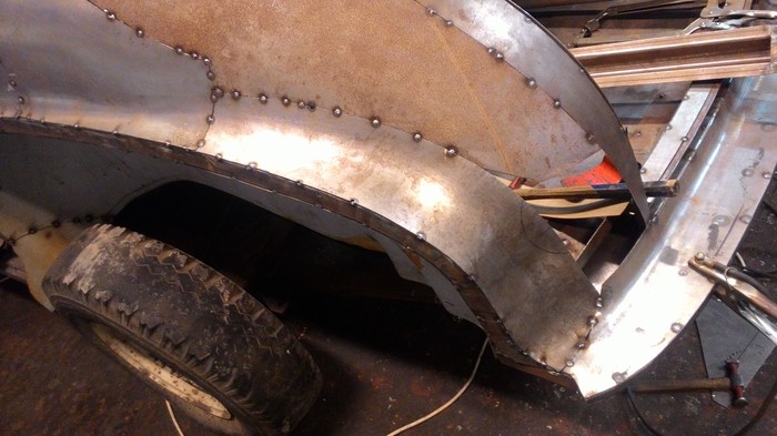 Осаживаю сначала молотком в наглую, затем ровняю испорченной шринкером, затем после шринкера удаляю неровности колесом. Неистовая куча попыток и вуаля - рамка садится на машину без зазора, а атк же центр - в центре.