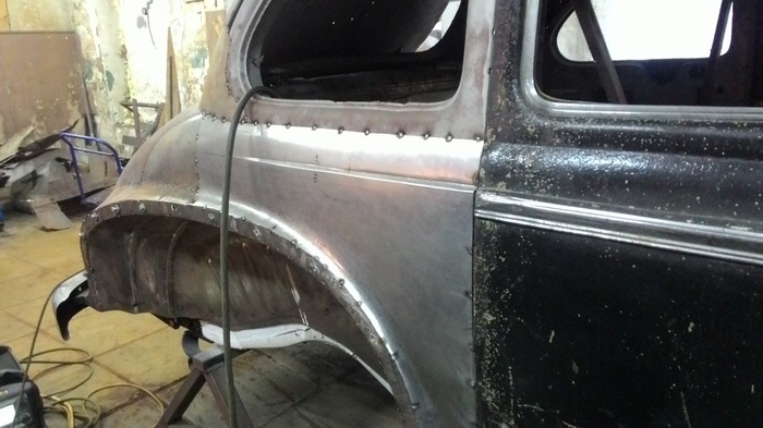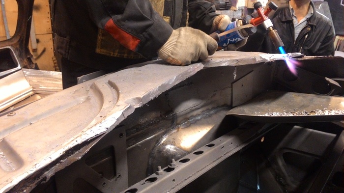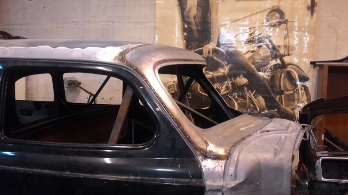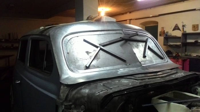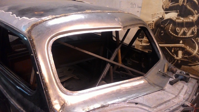 Ответ всем на вопрос из прошлой части: на этом ЗиСе был заменен проем лобового стекла от другой машины. Прям весь проем вырезали с какой-то тачки и вварили. Ясен хрен что оно не подходило, поэтому сверху и снизу бодро навалили оловом. Поехали!