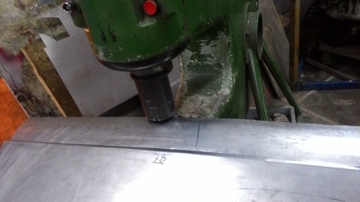 Отмечаю на рамке места на "брови" где нужно осадить металл, а атк же разрываю половинки и рисую клинышек, который нужно вырезать и сварить половинки по-новой.